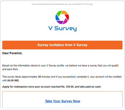 - Convenience - With vsurvey.in you can easily earn money from the comfort of your own home or anywhere else with internet access. You can complete surveys at your own place and whenever you have free time.
